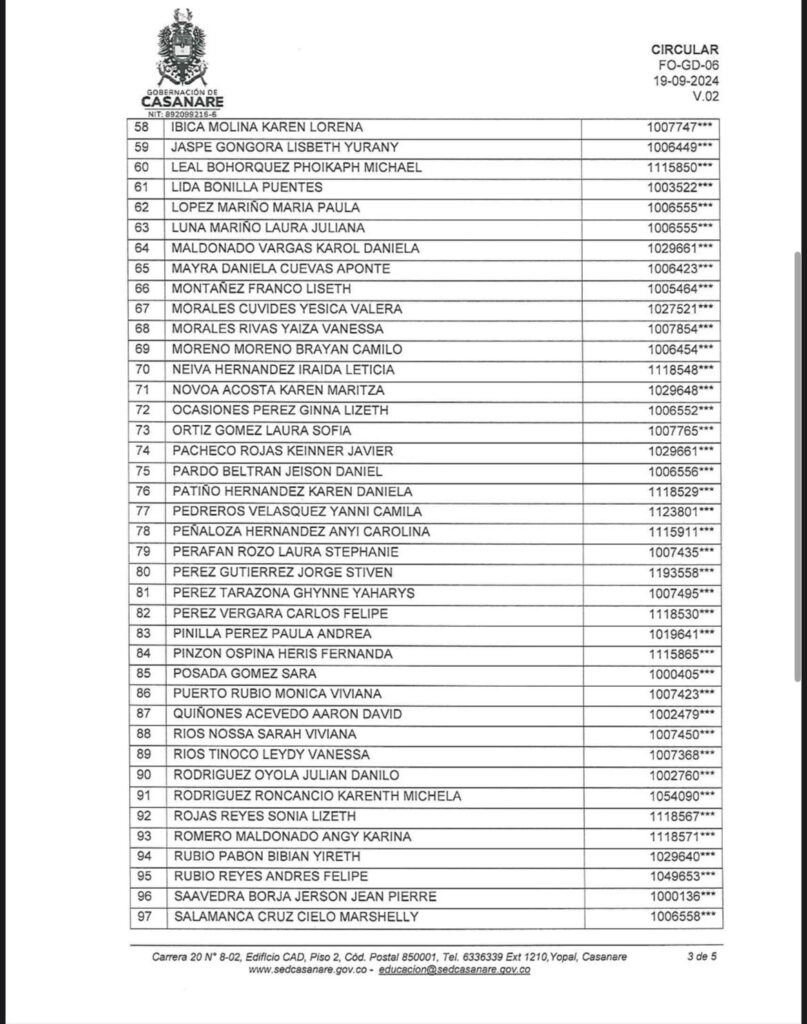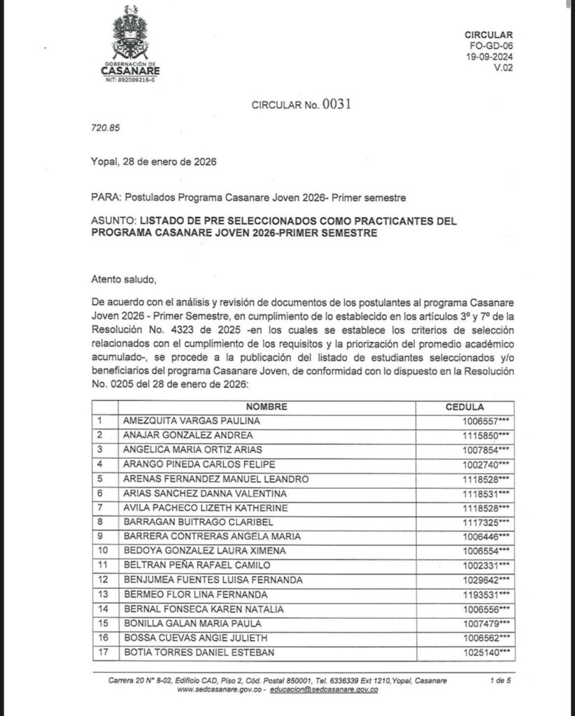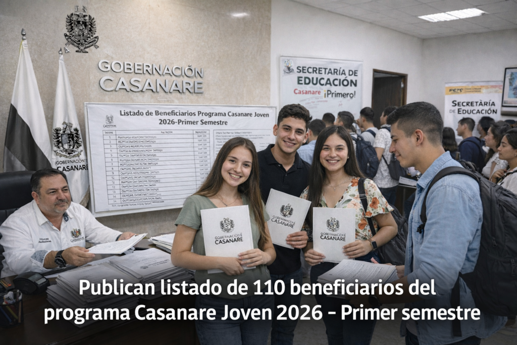 La Gobernación de Casanare, a través de la Secretaría de Educación departamental, informó que ya fue publicado el listado de estudiantes seleccionados y beneficiarios del Programa Casanare Joven 2026 – Primer Semestre, luego de realizar el análisis y revisión de los documentos presentados por los postulantes.