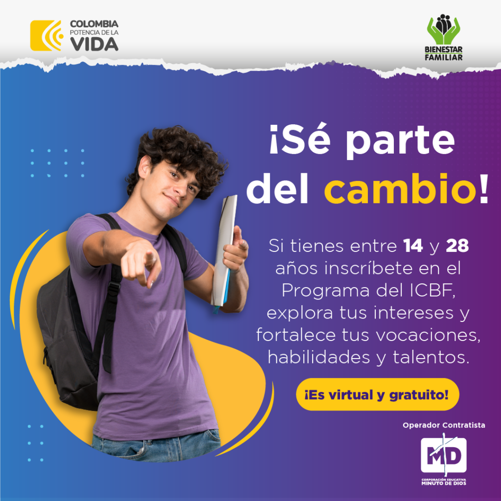 En el mes de la juventud, el ICBF lanza el Programa para el fortalecimiento de habilidades, vocaciones y talentos, modalidad virtual, abriendo la convocatoria gratuita y virtual para acompañar a 30.000 adolescentes y jóvenes.