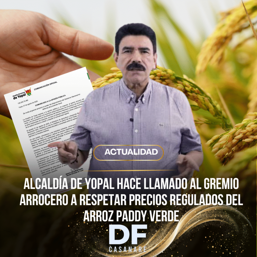 En ese sentido, la Administración Municipal exhorta a las industrias molineras, comerciantes e intermediarios del municipio de Yopal a respetar y aplicar los precios regulados, garantizando condiciones justas para los productores, en un esfuerzo conjunto por proteger la economía del campo y asegurar una cosecha transparente, ordenada y solidaria.