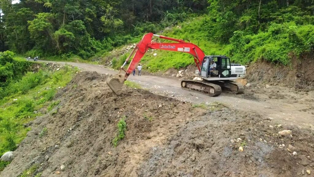 Las labores incluyen el retiro de material inestable, corte de talud para la ampliación de la vía, manejo de aguas de escorrentía mediante cuneteo, y el mantenimiento de la carretera con adición de material granular.