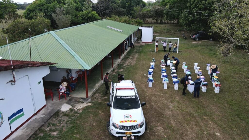 Durante la jornada de este martes fueron atendidos 209 hogares de un total de 445 hogares que serán beneficiados en este municipio. Las entregas se realizaron en las veredas San José del Ariporo, Santa Rita, Santa Teresa, La Argentina, Las Mercedes, Berlín, Santa María de Chire y Pueblo Nuevo, trabajo del director de Gestión del Riesgo, Wilson Porras, la alcaldesa Tatiana Tiraban y el apoyo de Bomberos Voluntarios.