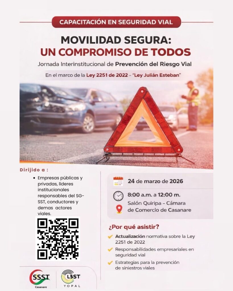 La invitación se mantiene abierta para toda la comunidad interesada en participar en este proceso formativo, especialmente empresas públicas y privadas, líderes institucionales responsables del SG-SST, conductores y demás actores viales, que busca aportar a la protección de la vida propia, la de las familias y la de quienes comparten los espacios de movilidad en el departamento.