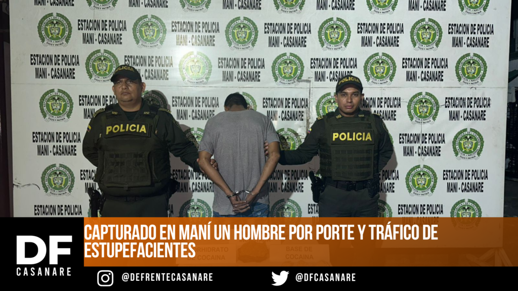 Maní, Casanare – En el marco de los controles realizados por la Policía Nacional, se logró la captura de un hombre de 26 años por el delito de porte y tráfico de estupefacientes.