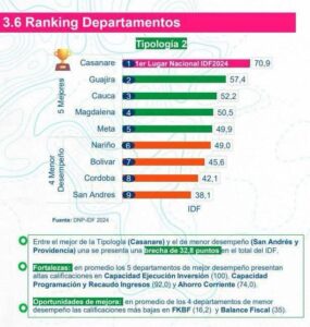 Este resultado ubica a Casanare como referente nacional en la gestión fiscal, gracias a una adecuada administración de los ingresos, la capacidad de inversión y el cumplimiento de metas presupuestales.