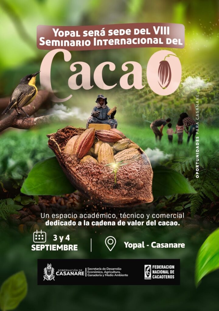 La Gobernación de Casanare informa que Yopal fue confirmada como sede de la octava versión del Seminario Internacional del Cacao, un evento de alcance nacional e internacional que posiciona al departamento como referente en el sector agroproductivo. La designación fue notificada de manera formal por la Federación Nacional de Cacaoteros, Fedecacao, que destacó los avances alcanzados por Casanare y su proyección en esta cadena productiva.