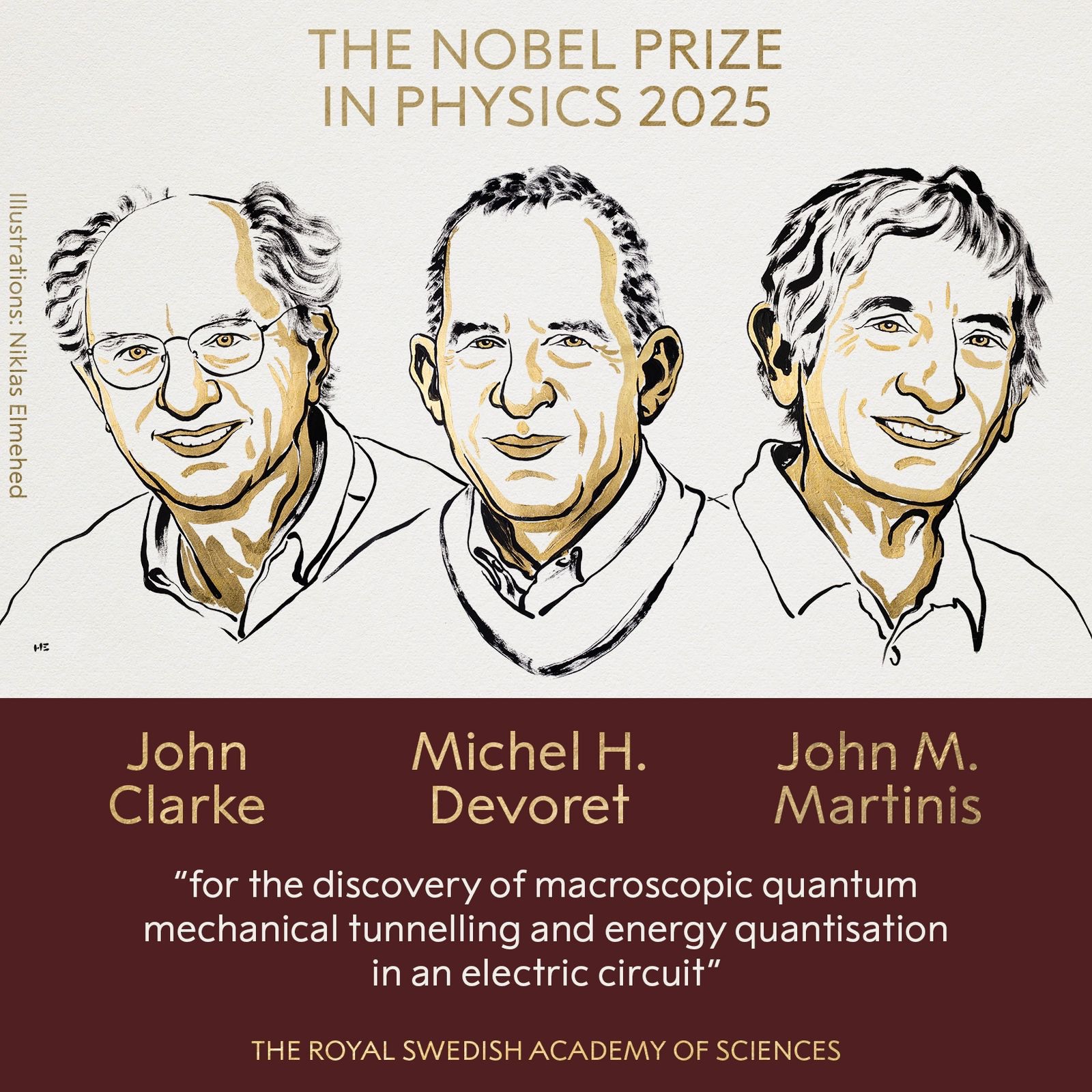 El Premio Nobel de Física 2025 fue otorgado al británico John Clarke, al francés Michel H. Devoret y al estadounidense John M. Martinis “por el