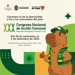 Asistencia de 1.300 lideres comunales de los 32 departamentos del país El departamento de Casanare será anfitrión del XXX Congreso Nacional de Acción Comunal, que