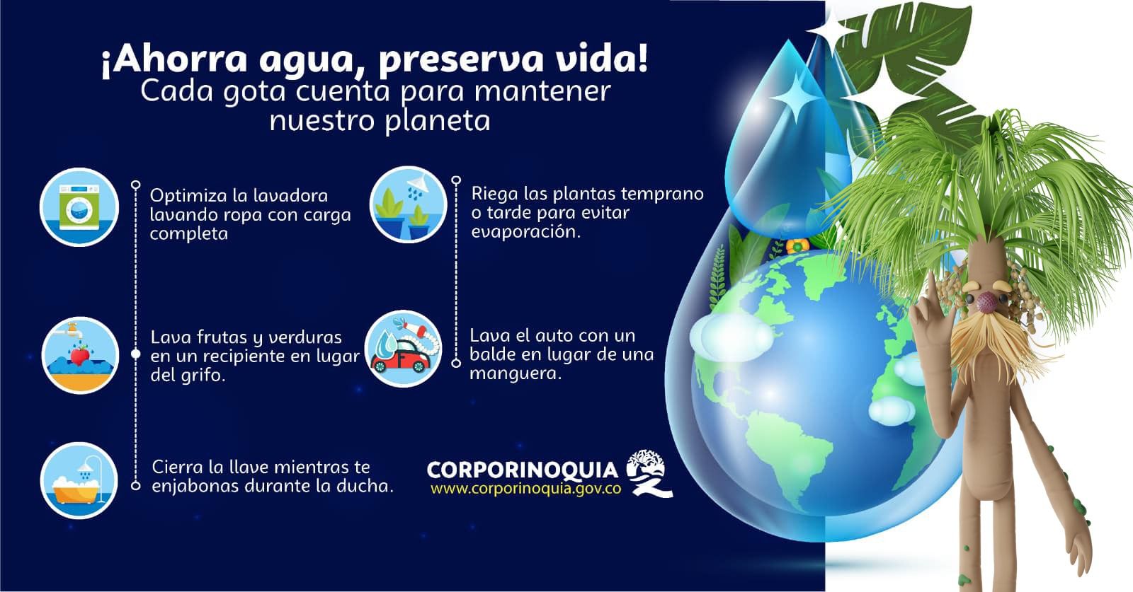 Ahorra agua, preserva vida. Cada gota cuenta para mantener nuestro planeta sostenible y garantizar un futuro próspero para las generaciones venideras. Corporinoquia un pacto por