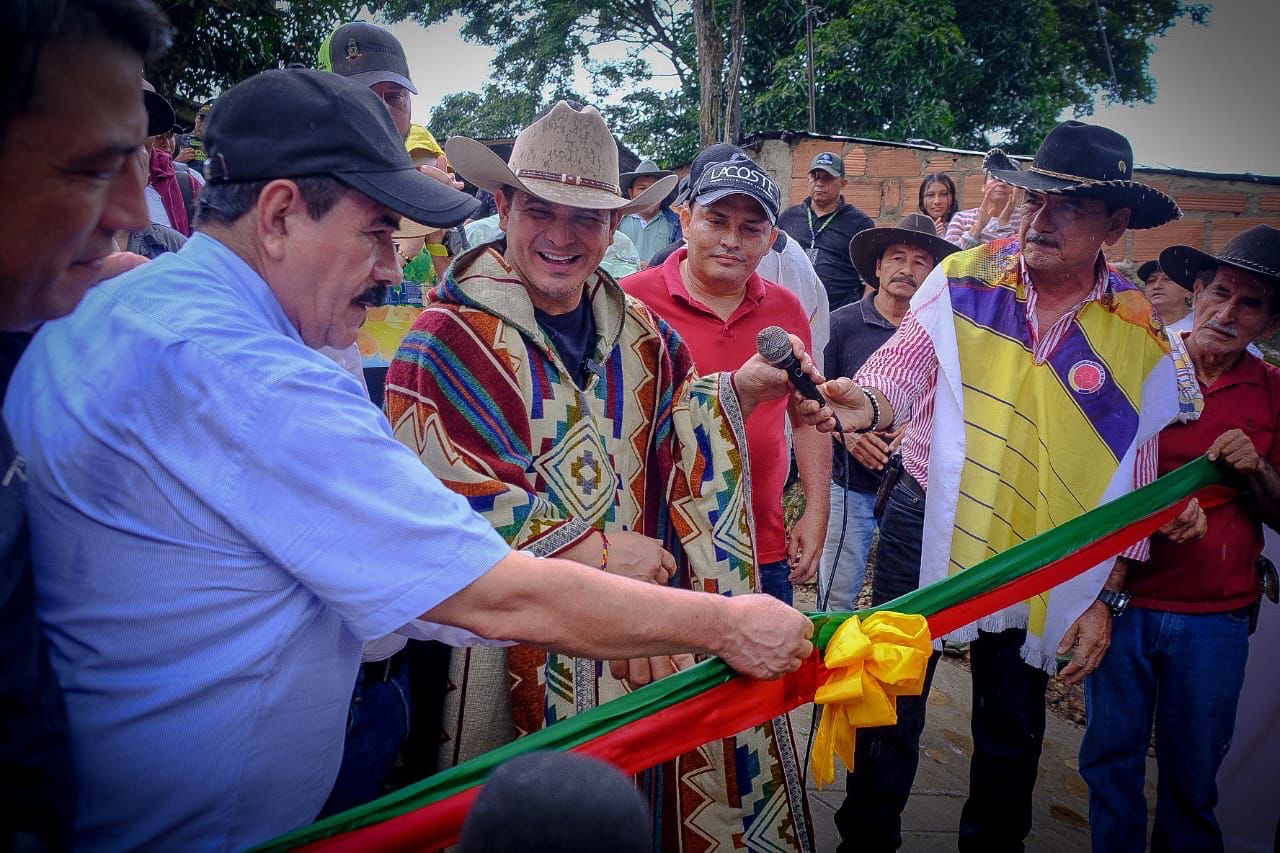 En el corregimiento de La Chaparrera, zona rural de Yopal, el gobernador de Casanare, César Ortiz Zorro, entregó una nueva placa huella construida por autoconstrucción