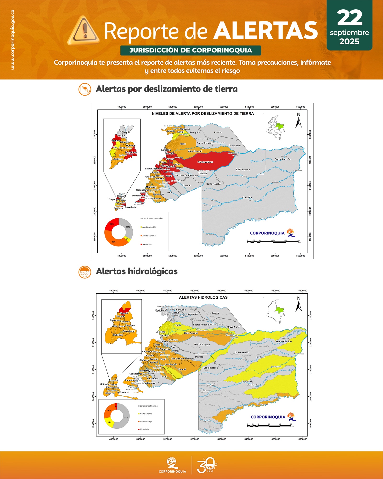 Corporinoquia, autoridad ambiental regional, presenta el más reciente reporte de alertas sobre deslizamientos de tierra y riesgos hidrológicos en su jurisdicción, emitido por el IDEAM,