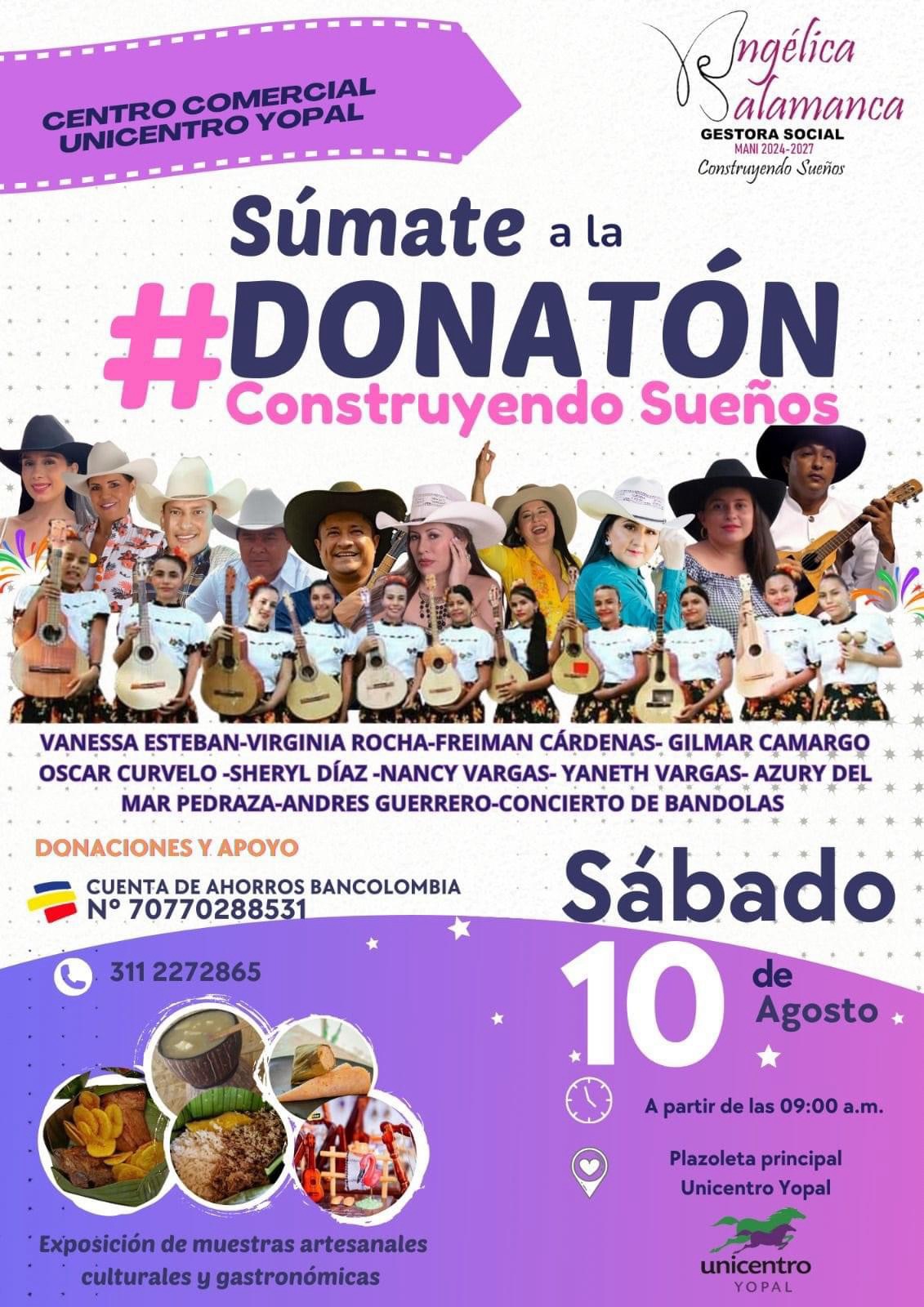 Este sábado, desde las 9:00 a.m., en el Centro Comercial Unicentro de Yopal, se llevará a cabo una importante Donatón organizada por Angélica Salamanca, gestora