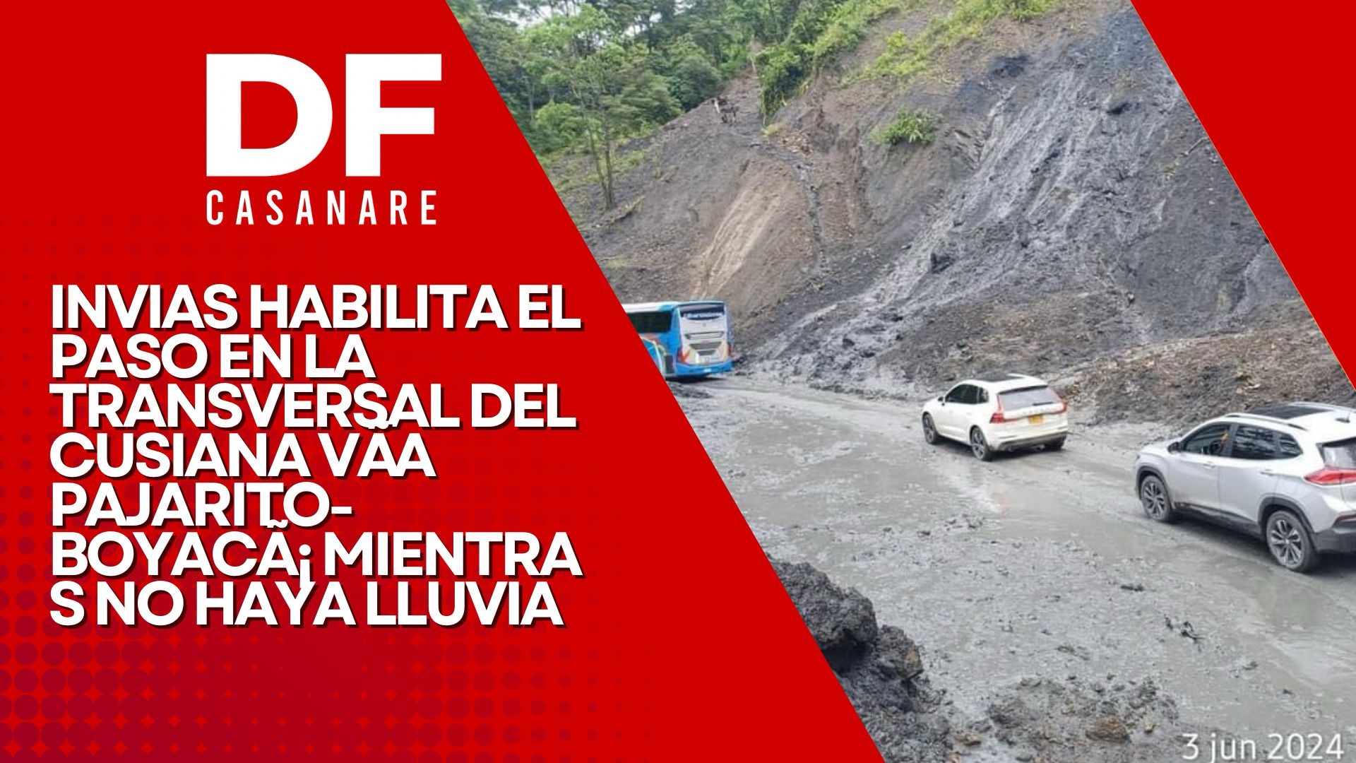 El Instituto Nacional de Vías (INVÍAS) ha informado que se ha habilitado el paso en el kilómetro PR83+600 de la Transversal del Cusiana, en la