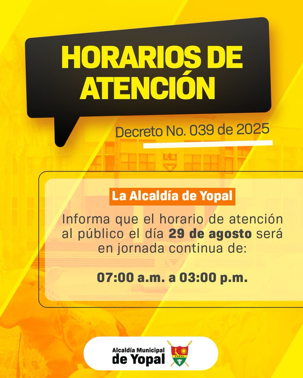 La Alcaldía de Yopal informó a la comunidad que, en cumplimiento del Decreto N° 039 de 2025 y en el marco del Acuerdo Laboral Colectivo