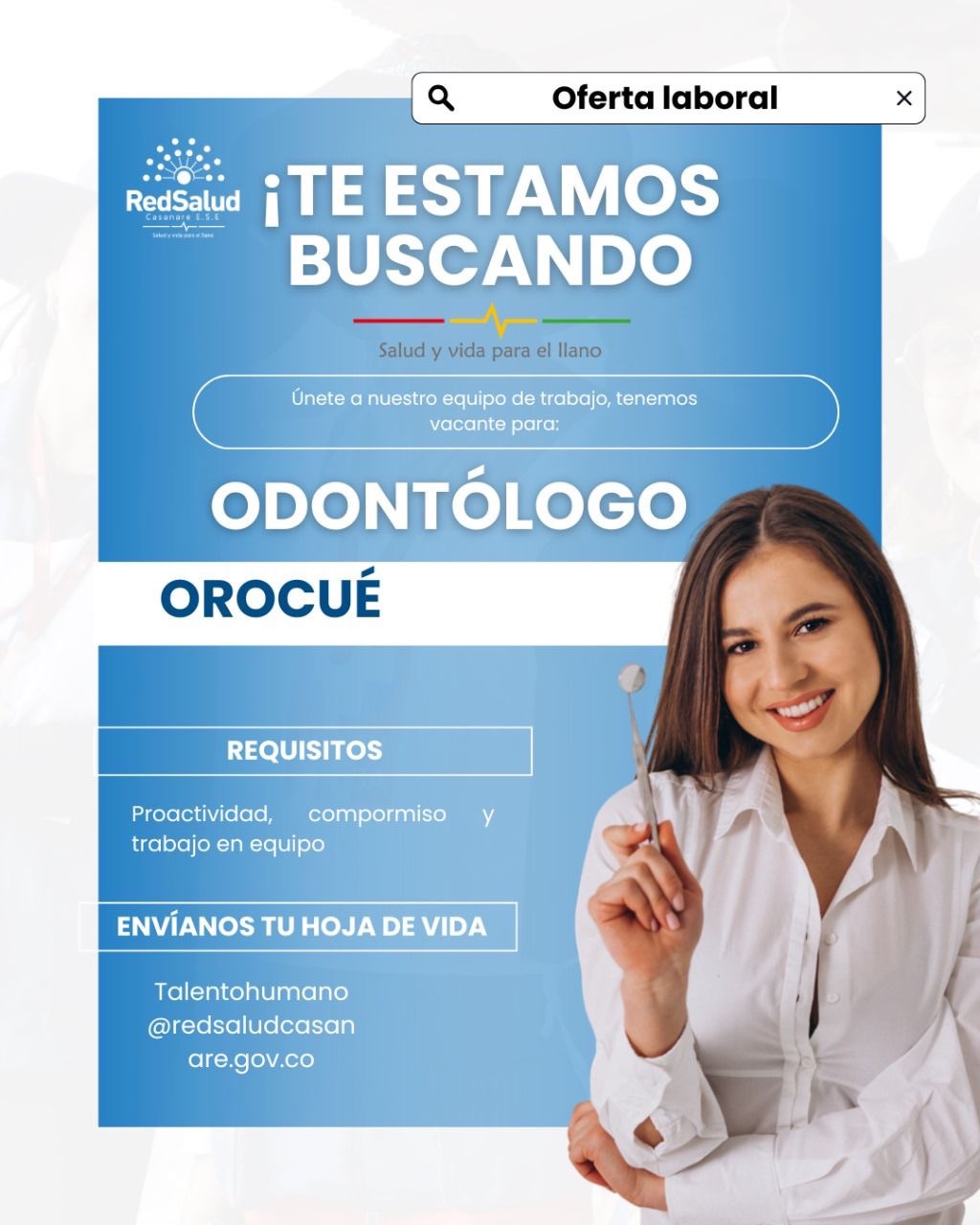 Red Salud Casanare abrió convocatoria para vincular personal asistencial en varias sedes del departamento, con el propósito de fortalecer la prestación de servicios médicos en