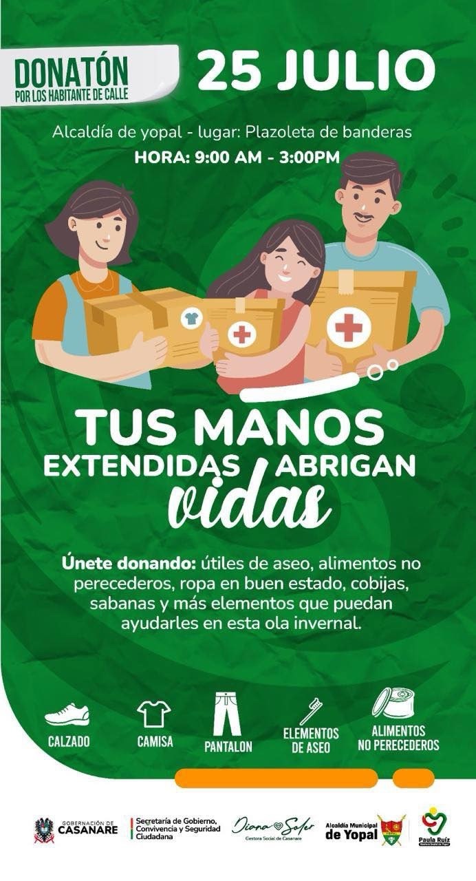 Con el propósito de brindar apoyo, dignidad y alivio a quienes más lo necesitan, la Gobernación de Casanare y la Alcaldía de Yopal, a través