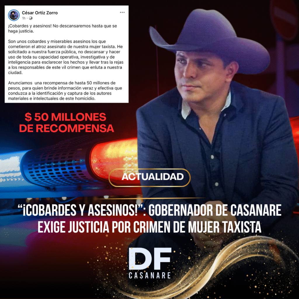 Con profunda indignación, el gobernador de Casanare, César Ortiz Zorro, se pronunció sobre el atroz asesinato de una mujer taxista en la capital del departamento, calificando el hecho como un crimen vil que enluta a toda la ciudad y no puede quedar impune.
