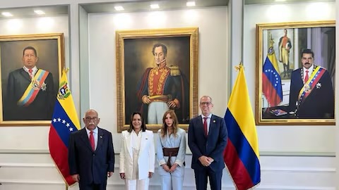 El miembro de gobierno se encontró con Delcy Rodríguez y la ministra de Comercio de Colombia, Diana Marcela Morales.