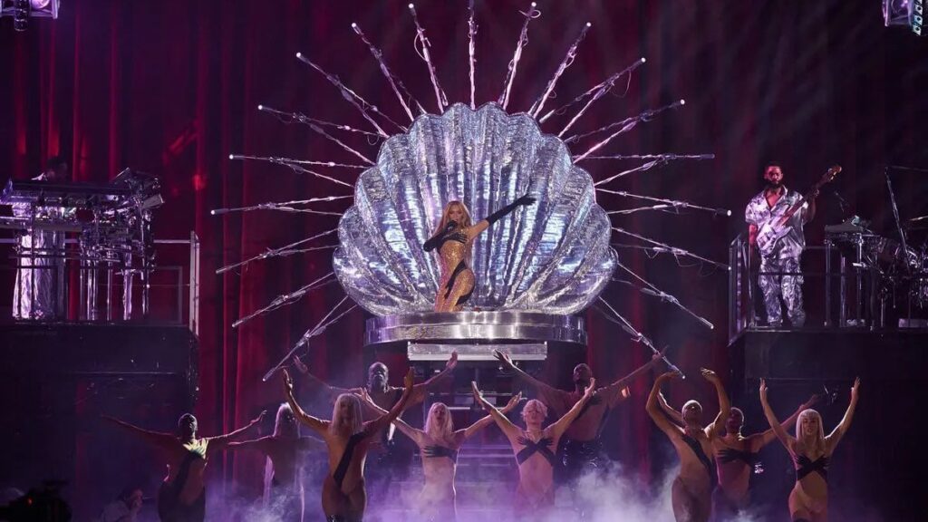 Se vio por ejemplo la imagen de una bailarina alienígena plateada con tacones que flotaba sobre una bola de discoteca. Para The Guardian fue un concierto lleno de “imágenes espaciales fusionadas con el pasado de Beyoncé. Ella misma se convirtió en un robot, tanto en la pantalla como en el escenario”.