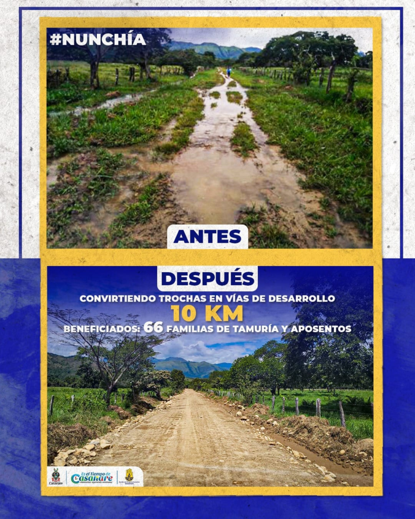 El mandatario seccional al hacer relación a las vías del Municipio de Nunchía señalo que allí fueron cerca de sesenta kilómetros los intervenidos dejando con plena transitabilidad vías veredales consideradas anteriormente como unas trochas.