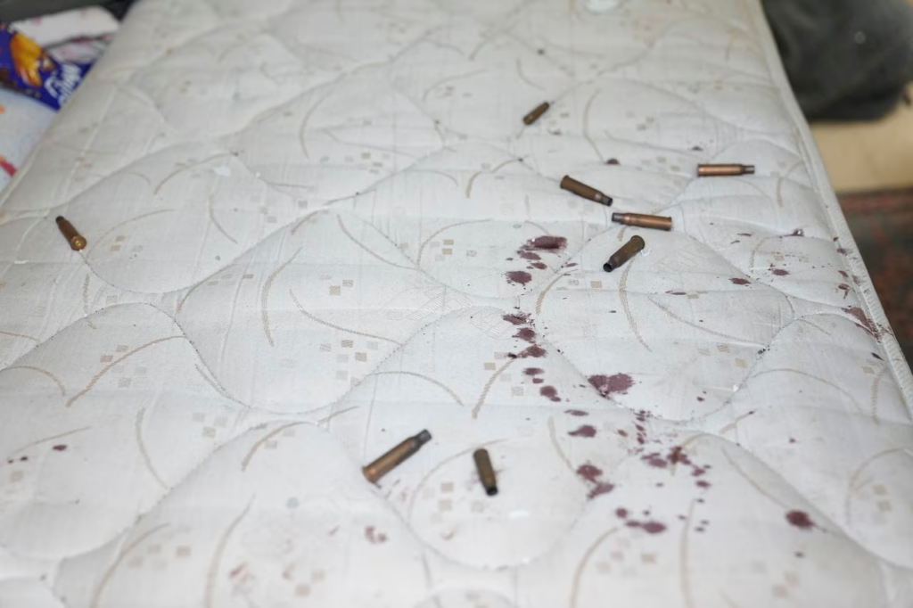 Las imágenes que empezaron a circular son otro signo de la violencia y barbarie contra población inocente. Muestra de ello está en balas sobre los colchones, numerosas marcas en las puertas por impactos de bala y hasta ropa de bebés cubiertas de sangre.