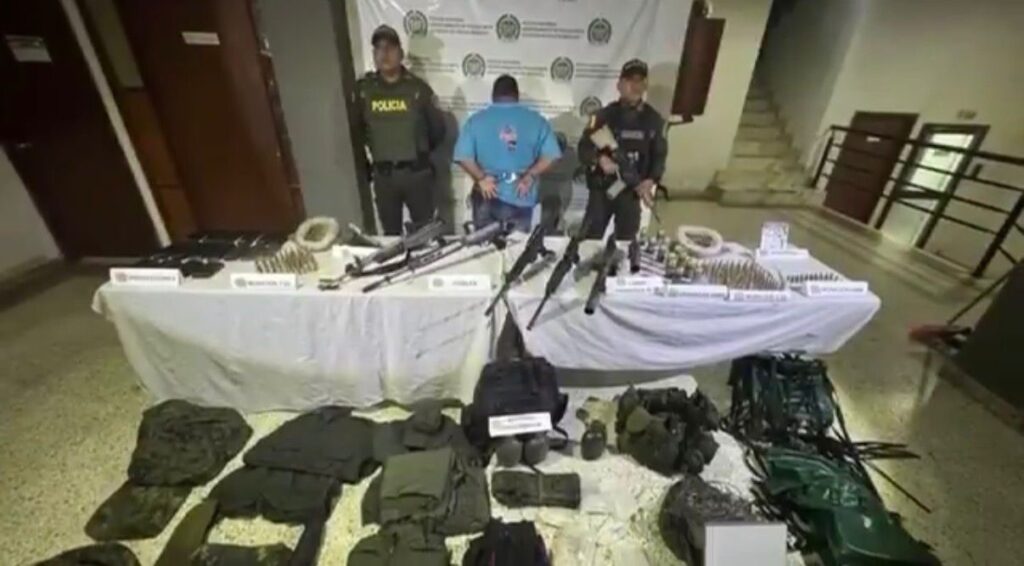 Durante el operativo, una persona fue capturada, quien manifestó que el armamento debía ser entregado en el centro poblado de La Julia, en el municipio de La Uribe (Meta).