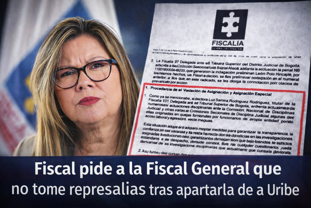 Un nuevo episodio dentro de la Fiscalía General encendió las alarmas sobre la autonomía de los fiscales en Colombia. La fiscal Luz Samira Rodríguez le solicitó formalmente a la fiscal general, Luz Adriana Camargo, que no ejerza represalias ni presión en su contra, luego de ser apartada de una investigación que lideró durante dos años, justo horas antes de una imputación.