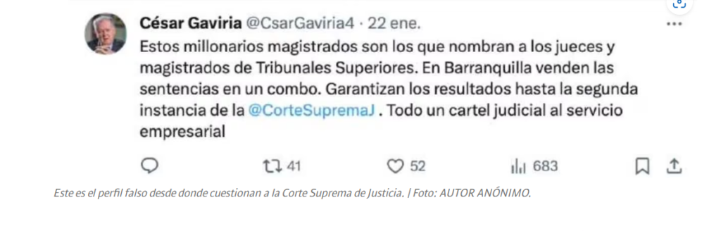 La cuenta la sigue un perfil falso del Pacto Histórico y el excandidato a la Alcaldía de Bogotá, Gustavo Bolívar, quien, en varias ocasiones, ha sido señalado de activar bodegas en favor del petrismo.