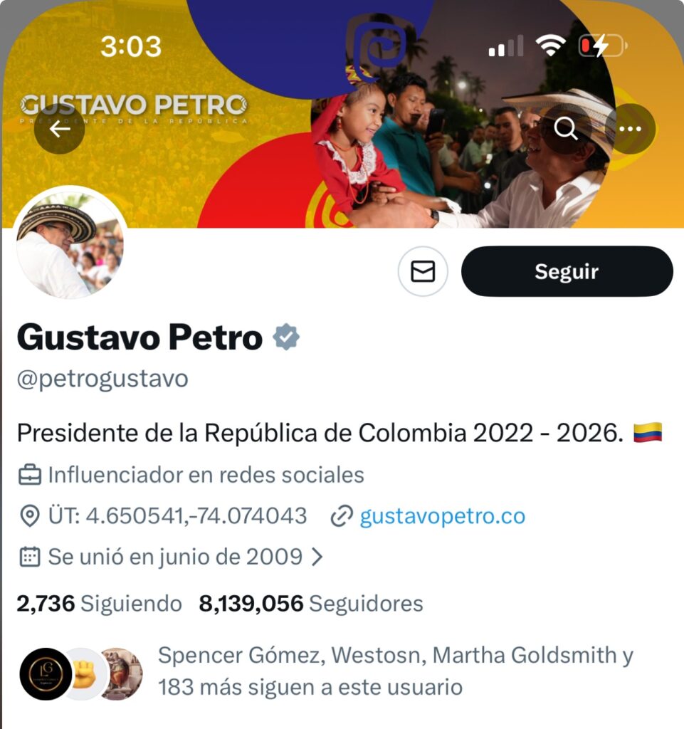 Pese a que X ejecuta periódicamente procesos de eliminación de cuentas falsas, Petro calificó el fenómeno como “extraño” y advirtió que sus seguidores podrían estar siendo retirados por “razones ideológicas” en una plataforma donde ha construido su presencia durante 15 años.