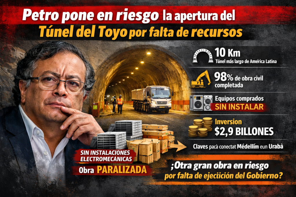 Petro sigue frenando el desarrollo: pone en riesgo la puesta en marcha del Túnel del Toyo