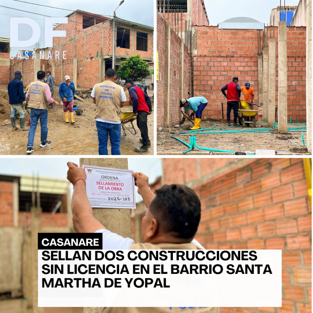 Como resultado, dos construcciones fueron selladas al no contar con la licencia urbanística correspondiente. Esta acción preventiva hace parte de los controles permanentes que se adelantan en las diferentes comunas de Yopal para garantizar el cumplimiento de la norma.