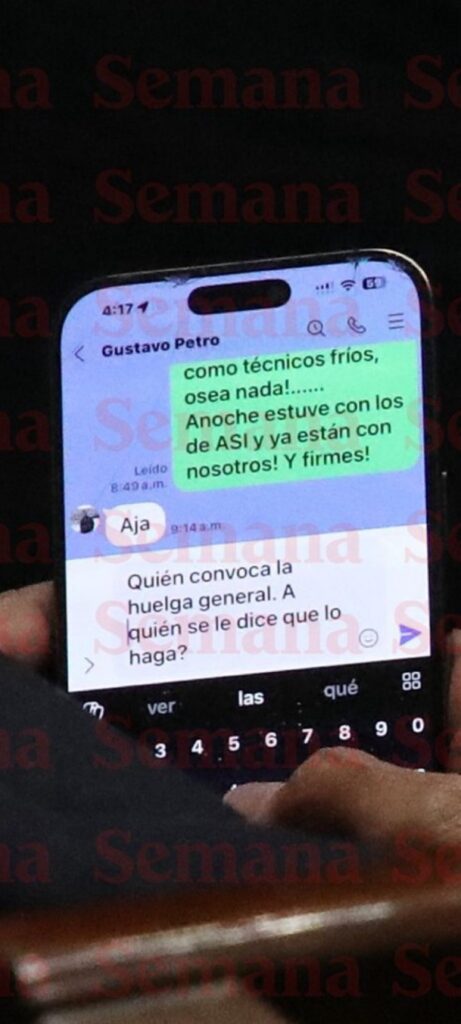 La imagen reveló más que cansancio. Mostró el instante exacto en que Benedetti, tras enfrentarse verbalmente al secretario del Senado, Diego González, escribió un mensaje directo al presidente Gustavo Petro, quien se encontraba en plena gira diplomática en China.