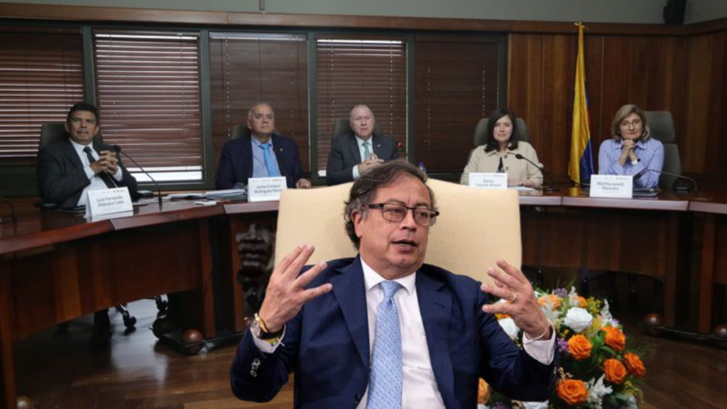 El presidente de la República, Gustavo Petro Urrego, llegó a las instalaciones de la Corte Suprema de Justicia al almuerzo previsto con y los presidentes de las altas cortes que es un escenario que servirá para aliviar las tensiones que se generaron la semana pasada luego de que el jefe de Estado dijo que también era el jefe del Fiscal General.