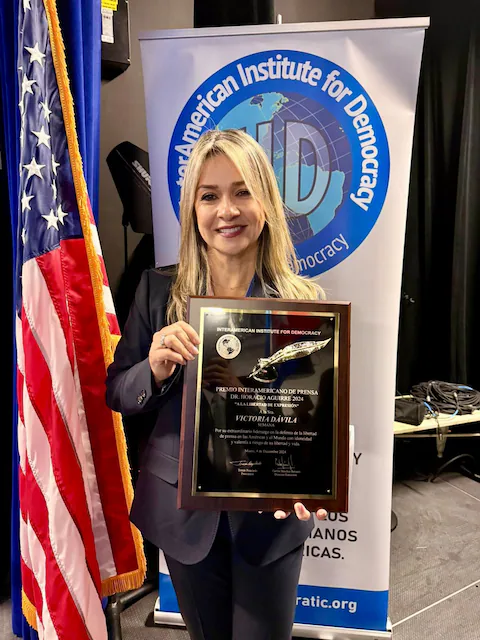 La periodista Vicky Dávila fue galardonada en Estados Unidos con el premio a la libertad de expresión, otorgado por el Interamerican Institute for Democracy en una ceremonia celebrada en Miami. Durante su discurso, Dávila advirtió que el presidente Gustavo Petro representa una amenaza para la democracia en Colombia, pero también responsabilizó a los «politiqueros y corruptos de siempre» por el ascenso de este tipo de liderazgos.