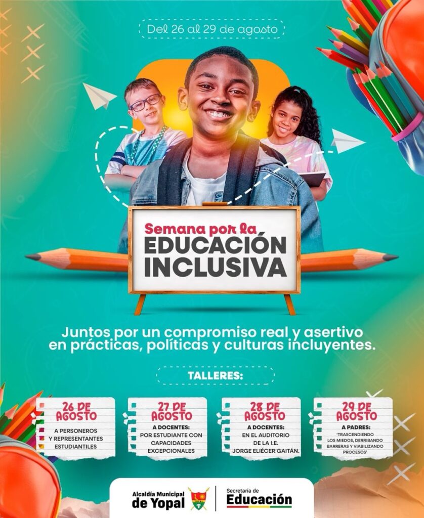 Del 26 al 29 de agosto, Yopal realizará la Semana por la Educación Inclusiva, una estrategia que busca consolidar al municipio como el territorio más inclusivo de la Orinoquía colombiana.